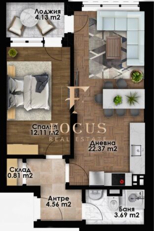 Организация Фокус представя двустаен апартамент в новостроящ се жилищен комплекс в квартал Беломорски, град Пловдив!