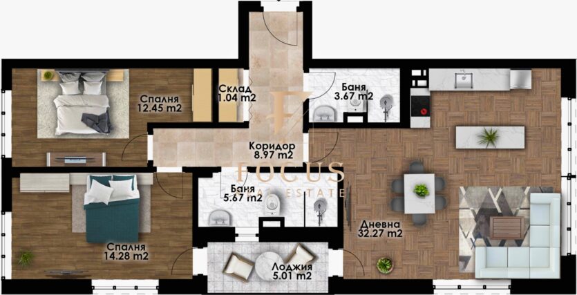 Организация Фокус представя тристаен апартамент в новостроящ се жилищен комплекс в квартал Беломорски, град Пловдив!