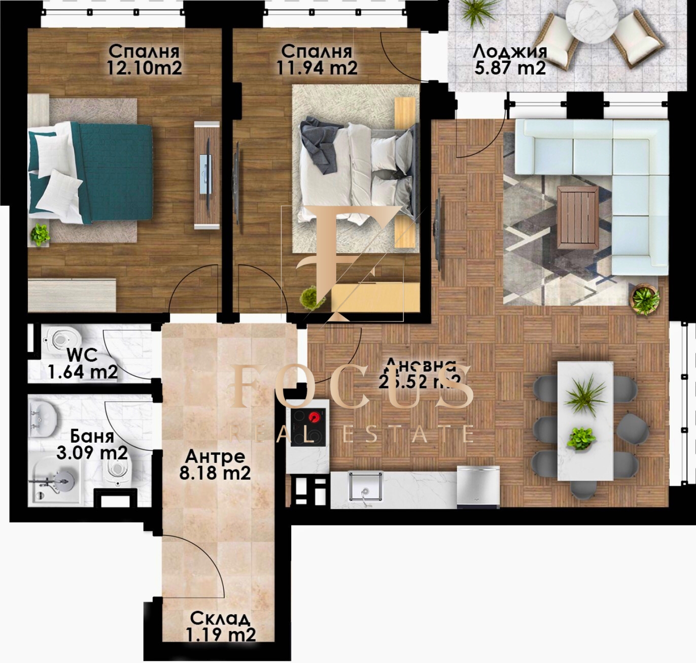 Организация Фокус представя тристаен апартамент в новостроящ се жилищен комплекс в квартал Беломорски, град Пловдив!