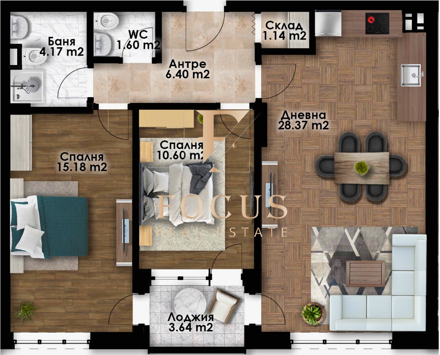 Организация Фокус представя тристаен апартамент в новостроящ се жилищен комплекс в квартал Беломорски, град Пловдив!