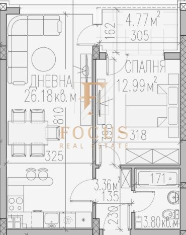 Организация Фокус представя двустаен апартамент в жилищен комплекс в ж.к. Тракия, гр. Пловдив.