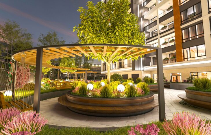 Комплексът включва четири жилищни секции, подземен и надземен паркинг с паркоместа и гаражи, озеленени площи с обособен детски кът и зони за отдих, както и специално проектиран лондж, разположен на партер.