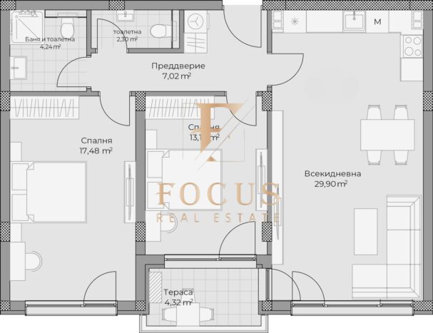 Организация Фокус има удоволствието да ви представи тристаен апартамент в нов жилищен комплекс в кв. Остромила!