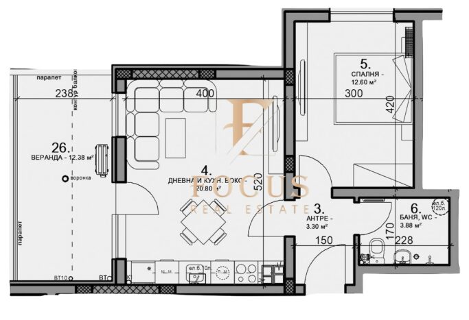 Организация Фокус представя двустаен апартамент в кв. Прослав, град Пловдив.