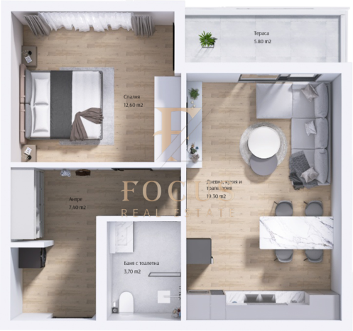 Апартаментите са оптимизирани от интериорен дизайнер още от самото начало – за да има логика на движението, всеки метър да има смисъл и цел, без мъртви площи. Ясни пространства, естествена светлина, зони за съхранение и усещане за завършен и удобен дом.