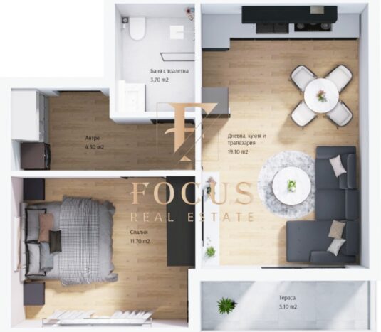 Организация Фокус има удоволствието да ви представи двустаен апартамент затворен жилищен комплекс в кв. Тракия, гр. Пловдив!