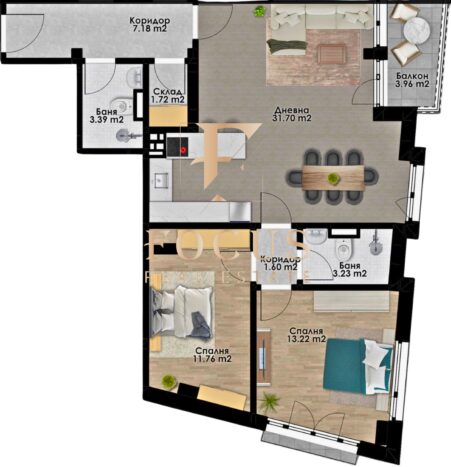 Организация Фокус предлага тристаен апартамент в нова сграда в кв. Кючук Париж, гр. Пловдив.