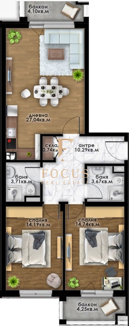 Организация Фокус представя тристаен апартамент в нов жилищен комплекс в кв. Остромила, гр. Пловдив.